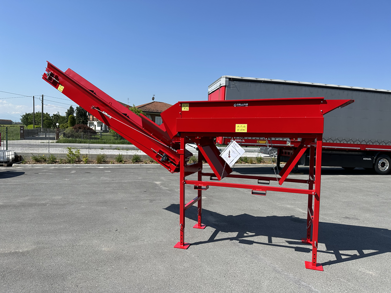 Il pulitore marcato Collino Costruzioni, permette di separare la legna dalle varie impurità e scaglie formatesi durante la lavorazione del legno. Una volta passato nella vasca, il legno viene poi spinto direttamente sul nastro trasportatore, indirizzabile di 15° verso destra o sinistra.